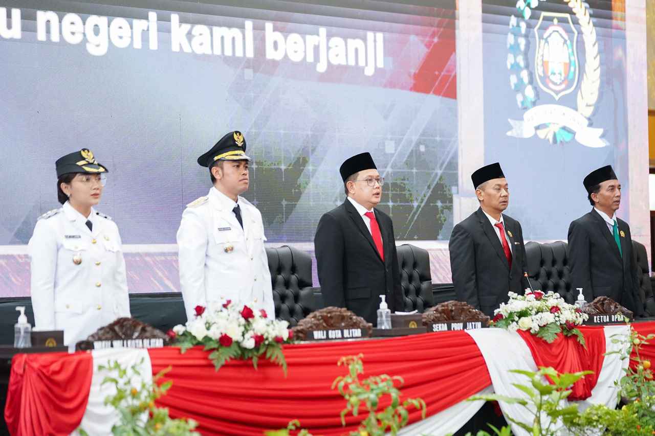 KOTA BLITAR, 4 MARET 2025 - Sekretaris Daerah Provinsi Jawa Timur Adhy Karyono menghadiri serah terima jabatan (Sertijab) Wali Kota Blitar Syauqul Muhibbin dan Wakil Wali Kota Blitar Elim Tyu Samba di Gedung DPRD Kota Blitar, Selasa (4/3).